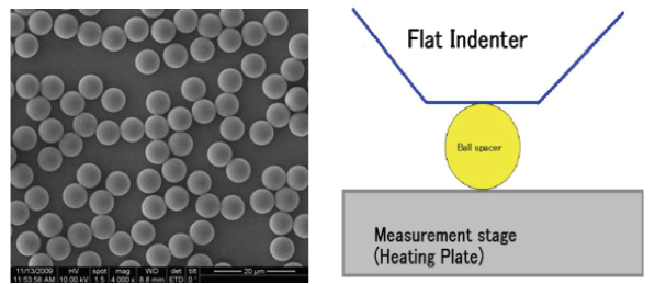 그림. 2 : 비드 스페이서의 SEM (주사 전자 현미경) 이미지와 FISCHERSCOPE HM2000 및 평면 압자를 사용한 측정 그림
