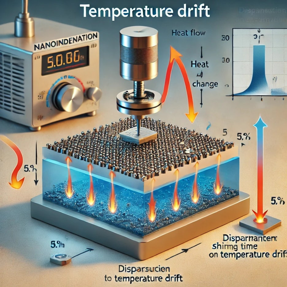 온도 드리프트는 시간이 지남에 따라 온도 변화로 인해 변위 측정값이 변하는 현상을 의미합니다. 나노인덴테이션에서는 변위 측정이 매우 정밀하게 이루어지므로, 온도 변화가 결과에 큰 영향을 줄 수 있습니다.