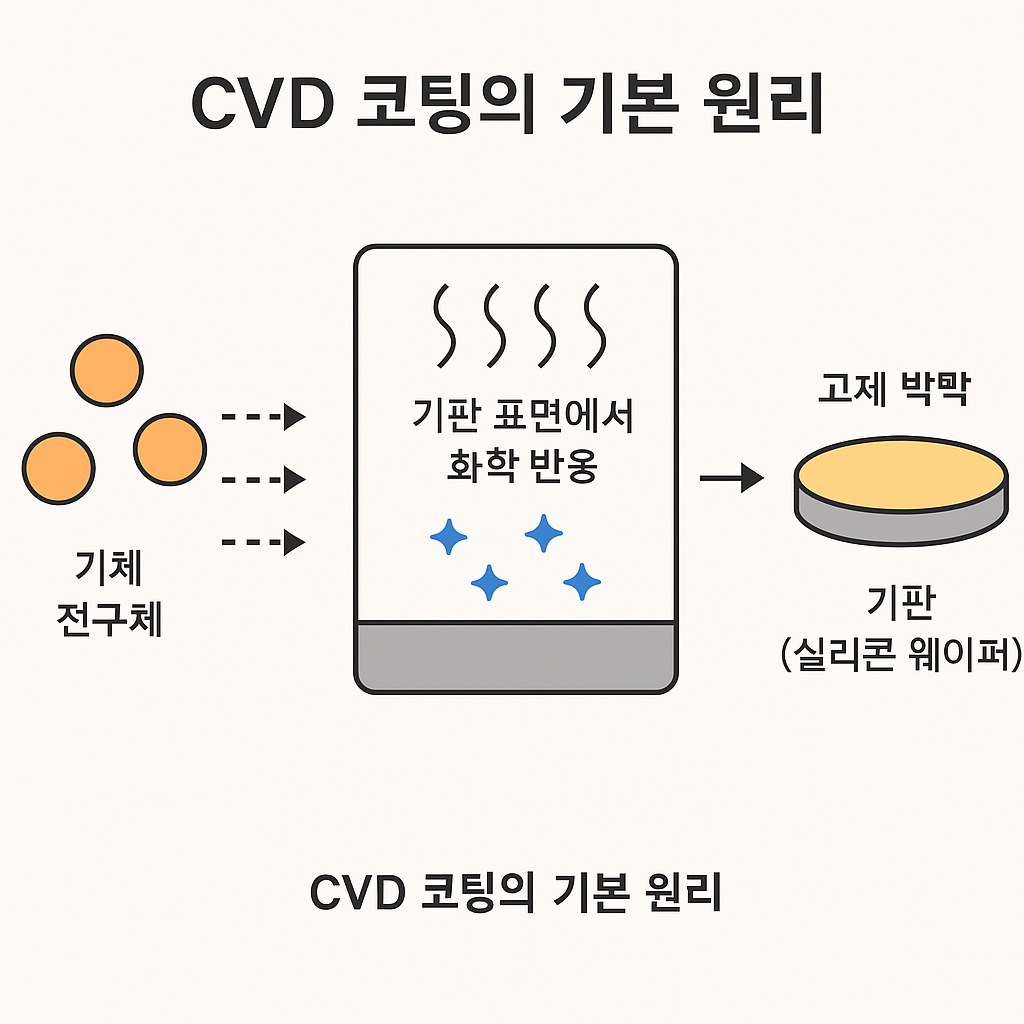 간단히 말하면, 기체 상태의 물질을 화학 반응을 통해 고체 박막으로 증착하는 표면 처리 기술이에요.