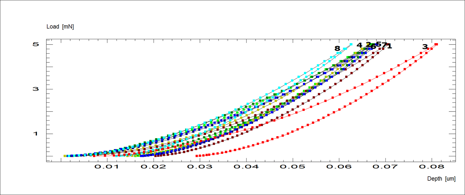 DLC 코팅은 원래 표면이 매끄럽지만, 기판 처리나 플라즈마 조건에 따라 미세 거칠음이 발생할 수 있습니다. 나노인덴터는 포인트 단위의 국소 특성을 측정할 수 있어, 거칠음이 특성에 미치는 영향을 상세히 분석할 수 있습니다.